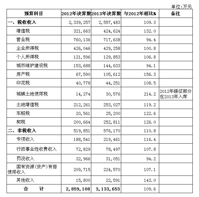 2013年度厦门市本级公共财政预算收入决算情况表
